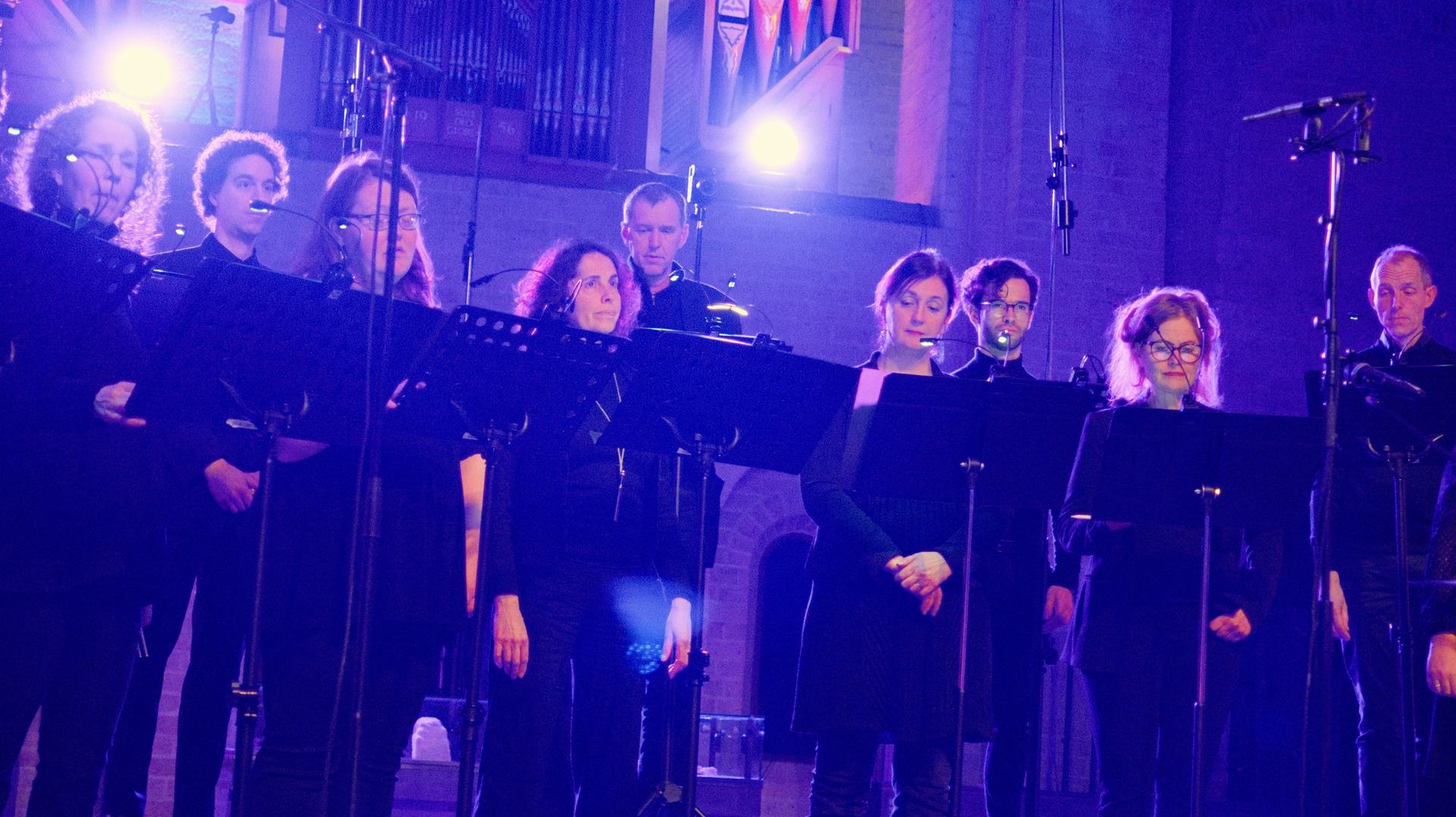 Nicolaïkerk, Elive (Feb '24): Performance of 'a-a-a', a piece for choir, organ, percussion and electronics.