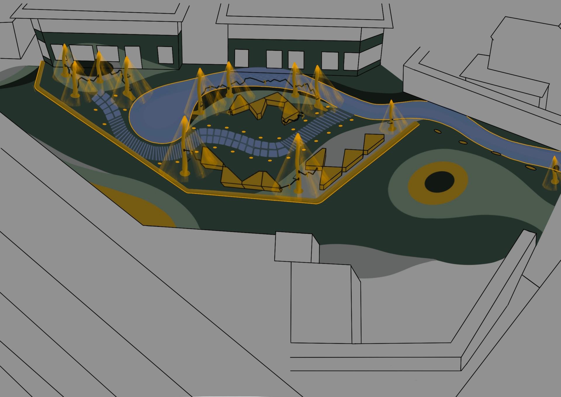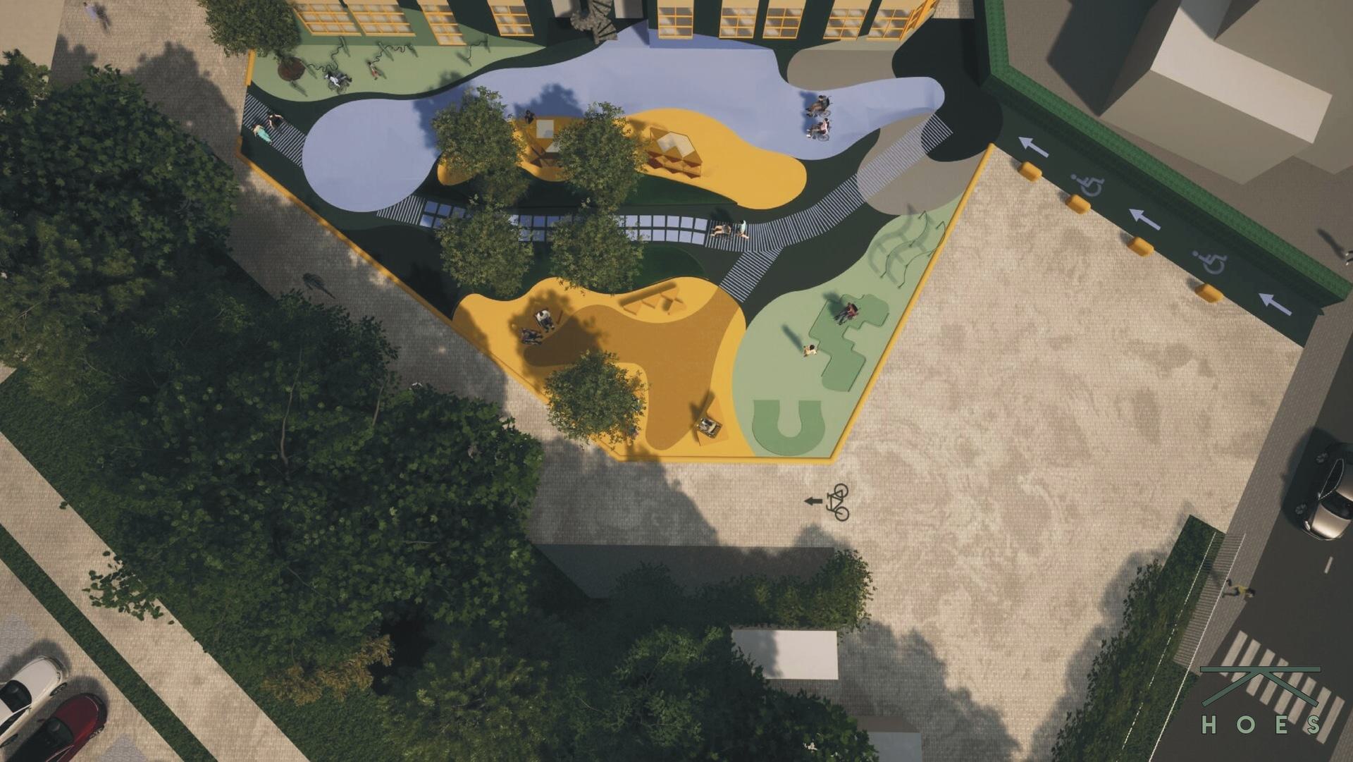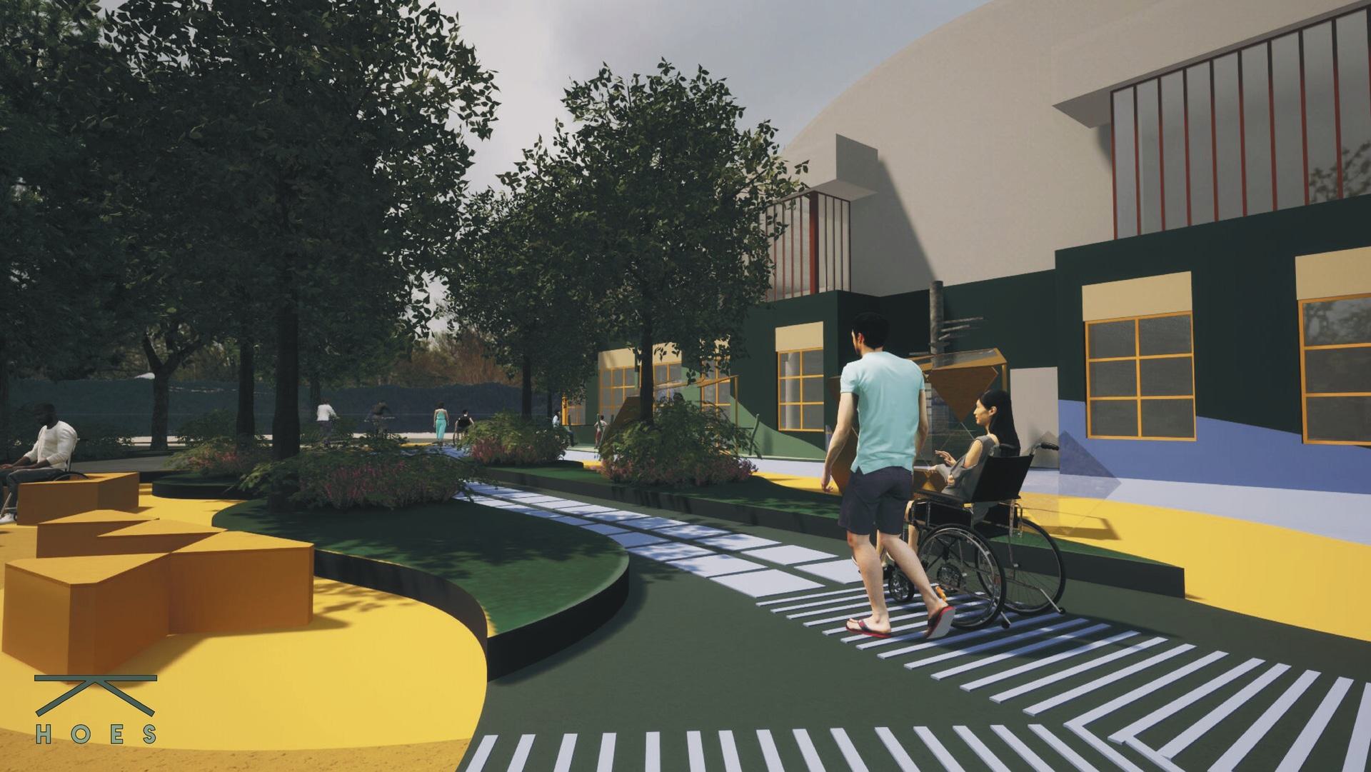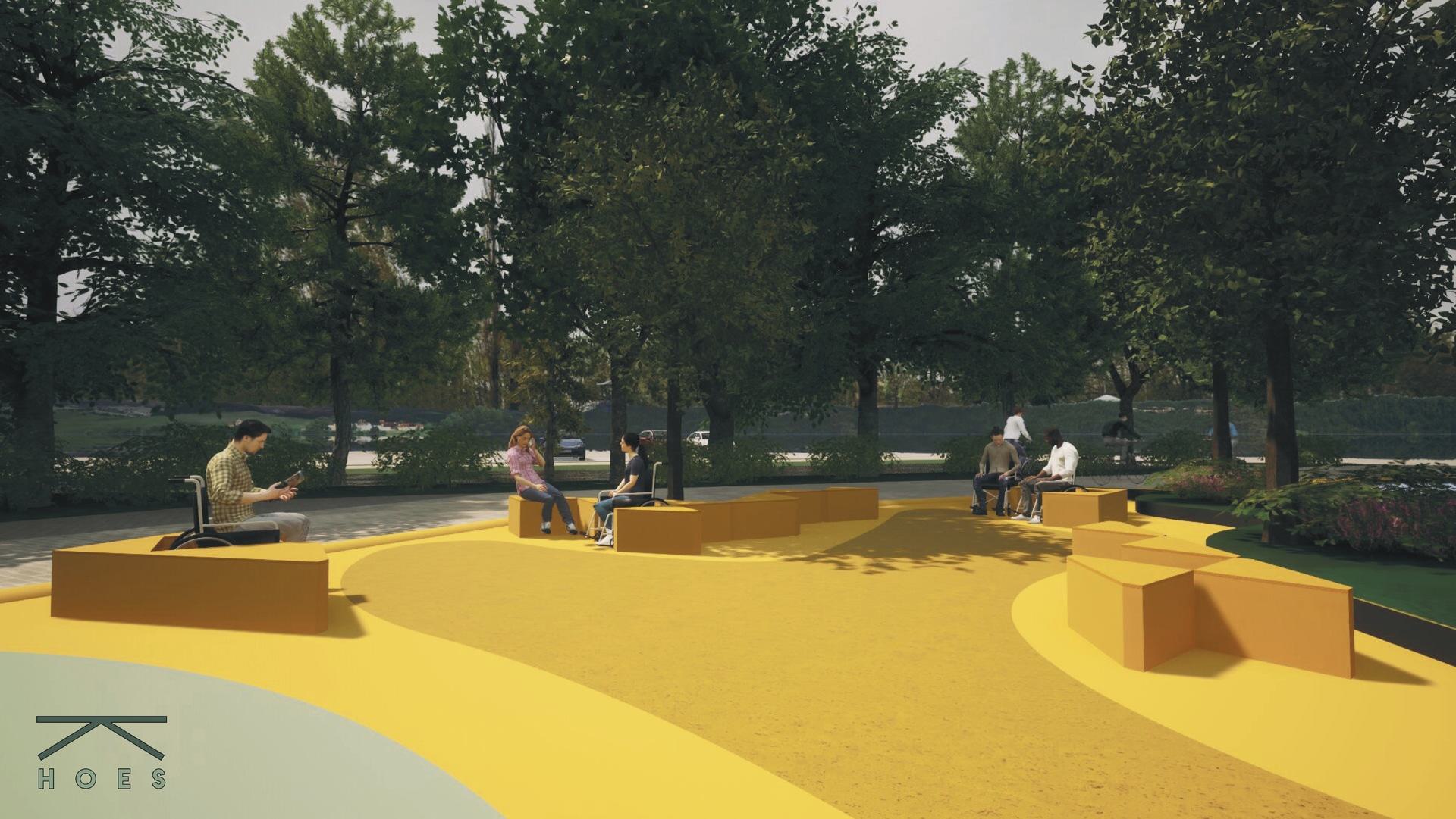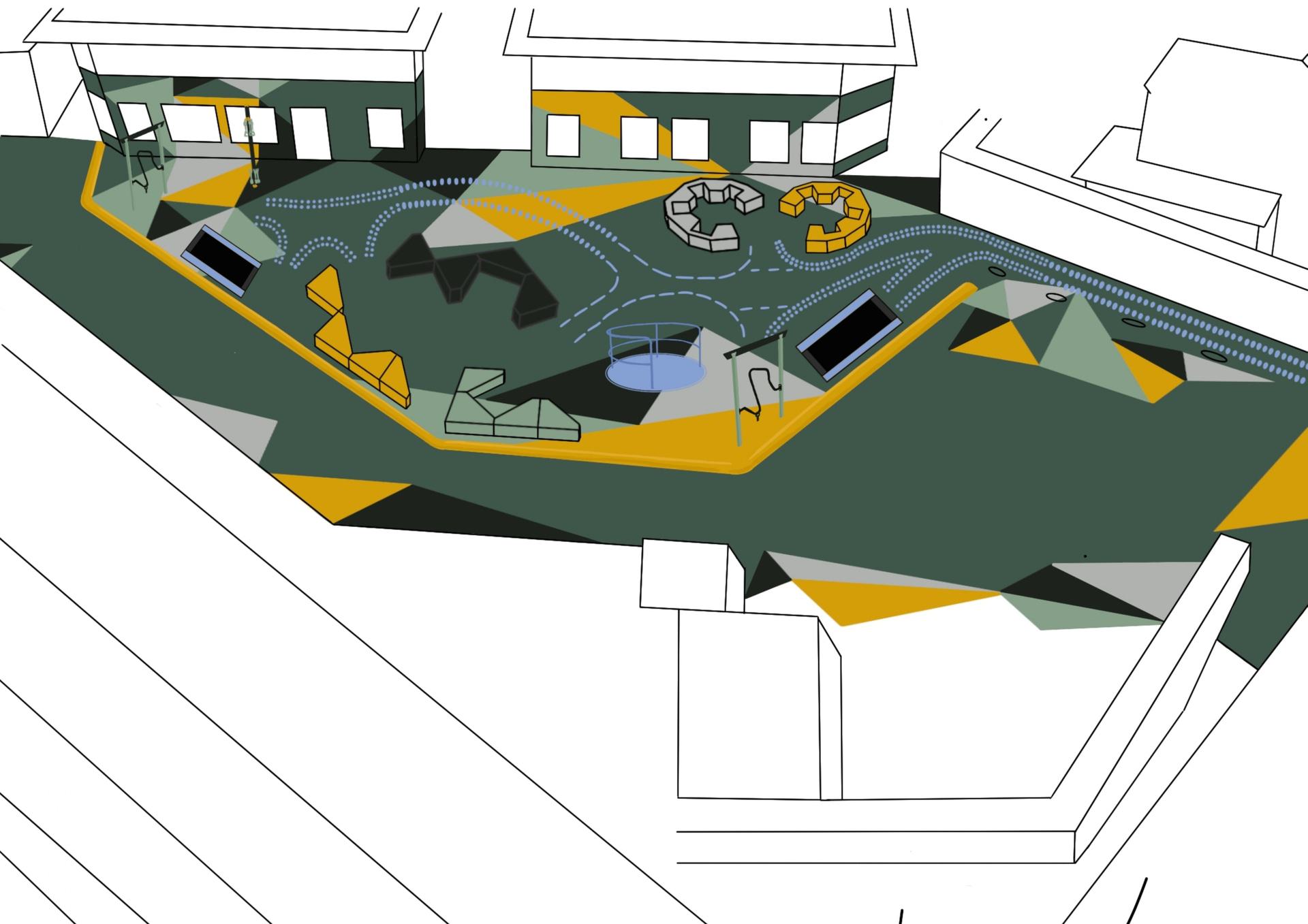 Het hogere doel van het plein is om een gevoel van vrijheid te creëren, waarbij volledige rolstoel toegankelijkheid essentieel is. Ik heb met mijn stakeholders verschillende woorden verkend die naar vrijheid verwijzen, waaruit een selectie is gemaakt als basis voor het ontwerp. Deze woorden zijn als een route op locatie uitgetekend en vormen de leidraad voor het ontwerp, tevens als waardenkader. ‘Groei’, ‘Alles kunnen’ en ‘Vrijheid’ zijn de kernwoorden die de ervaring van het plein belichamen, waarbij de passende elementen zijn toegevoegd om de indeling van het ontmoetingsplein te bepalen.