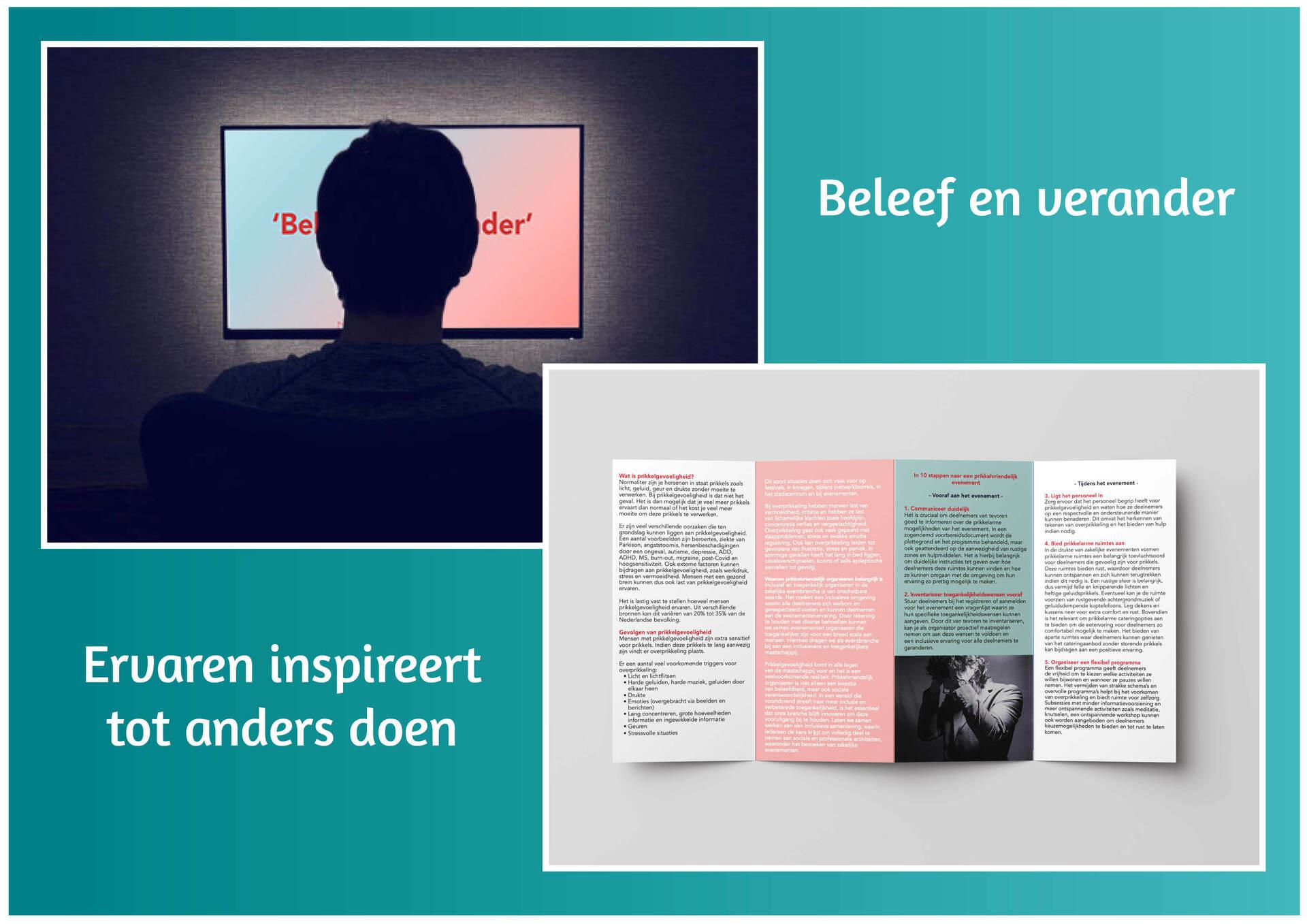 Om de zakelijke eventorganisator te voorzien van informatie over prikkelgevoeligheid en prikkelvriendelijk organiseren, ontvangt men na het ervaren van de installatie een uitgebreide flyer met daarin informatie over prikkelgevoeligheid, overprikkeling en hoe men in tien stappen een prikkelvriendelijk evenement organiseert. De flyer ondersteunt de zakelijke eventorganisator in dit proces en voorziet de doelgroep van praktische kennis om actie te kunnen ondernemen.