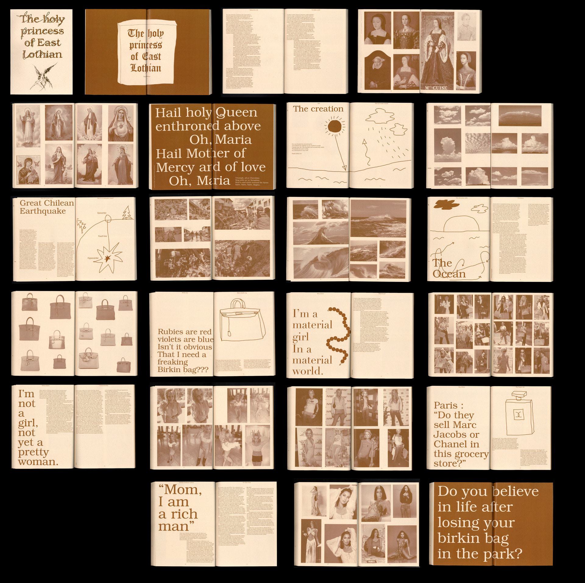 “Chain of Stories” embraces and explores ancient folk tales, seeking to draw modern conclusions in the form of a magazine. By juxtaposing associations, a new fictional narrative unfolds. Each subsequent topic is linked to the previous one, creating a cohesive storyline. The folk tales are deliberately chosen to be relevant in today's world, albeit with a light-hearted layer. In the design of the magazine, many clues are hidden. These clues can help you to unravel the conclusion.