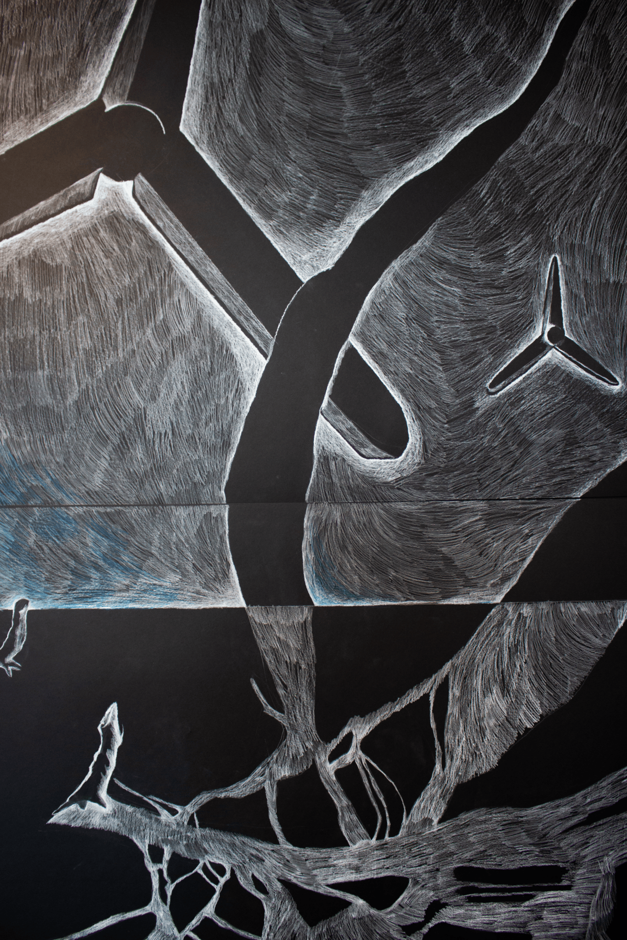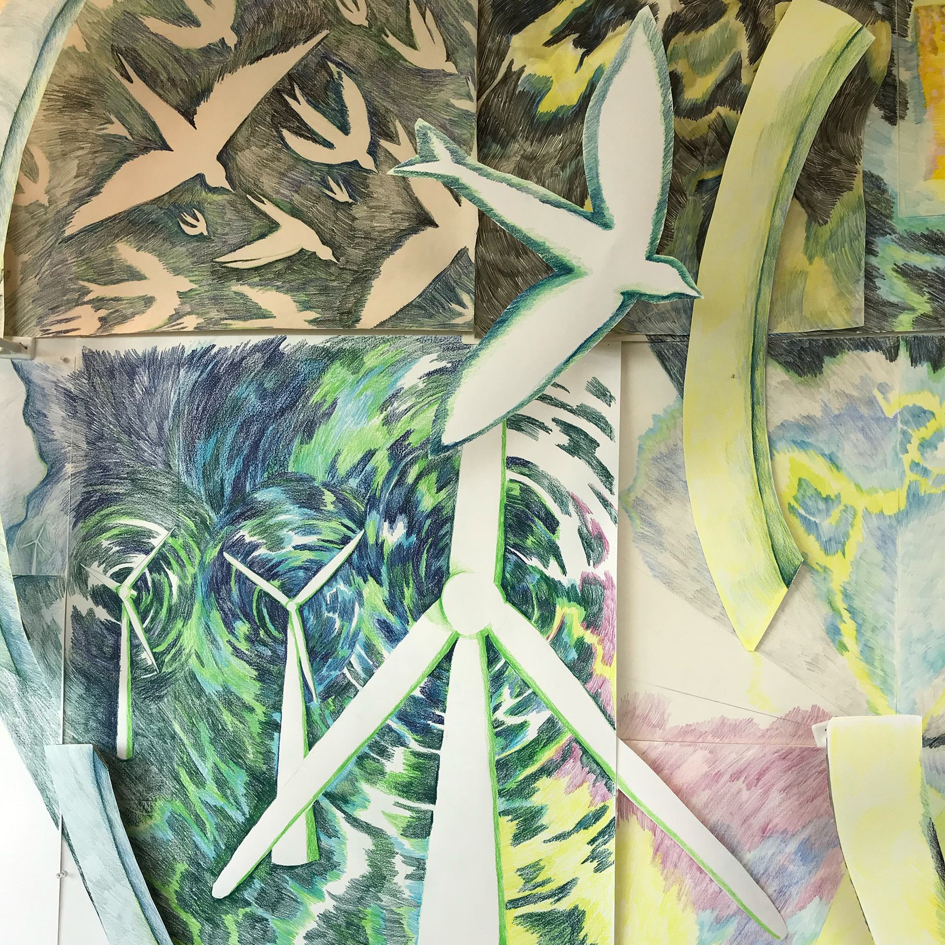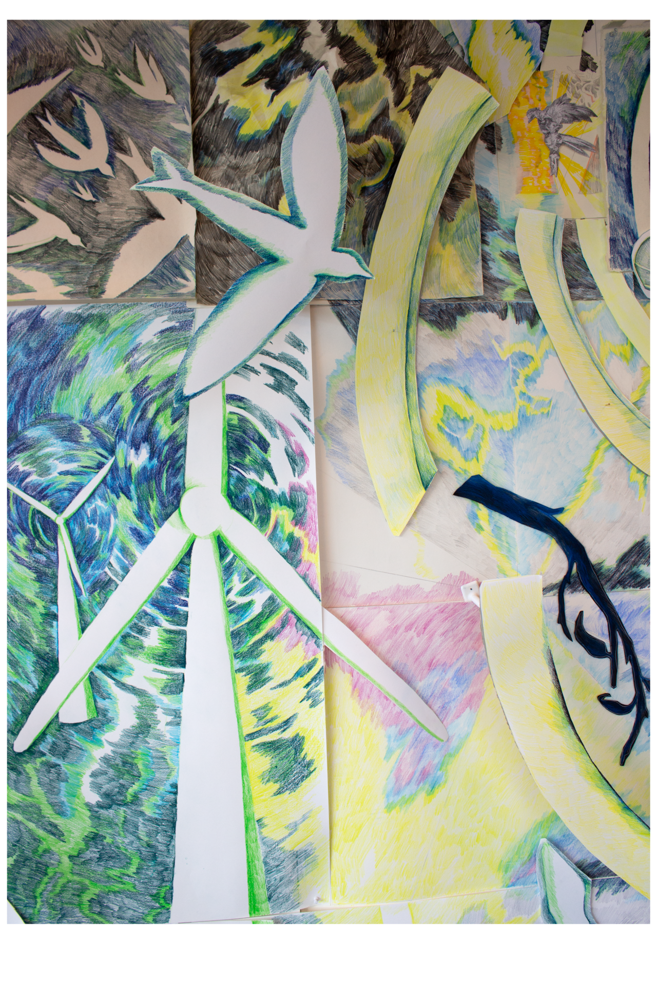 Al sinds ik het me kan herinneren ben ik aan het tekenen. Ik teken schetsboeken vol en vaak is één tekening de aanleiding tot een groter project. Ik teken dromerige werelden waarin ik een grens opzoek tussen figuratie en abstractie. Mijn inspiratie haal ik uit fotografie, films, theater, dieren, natuurfenomenen en sprookjes. De keuze van het materiaal laat ik af hangen van het onderwerp en daarin blijf ik experimenteren. Ik werk voornamelijk met analoge technieken, zoals potlood, ecoline, krijt en grafiek. Die ik samen breng in een collage.