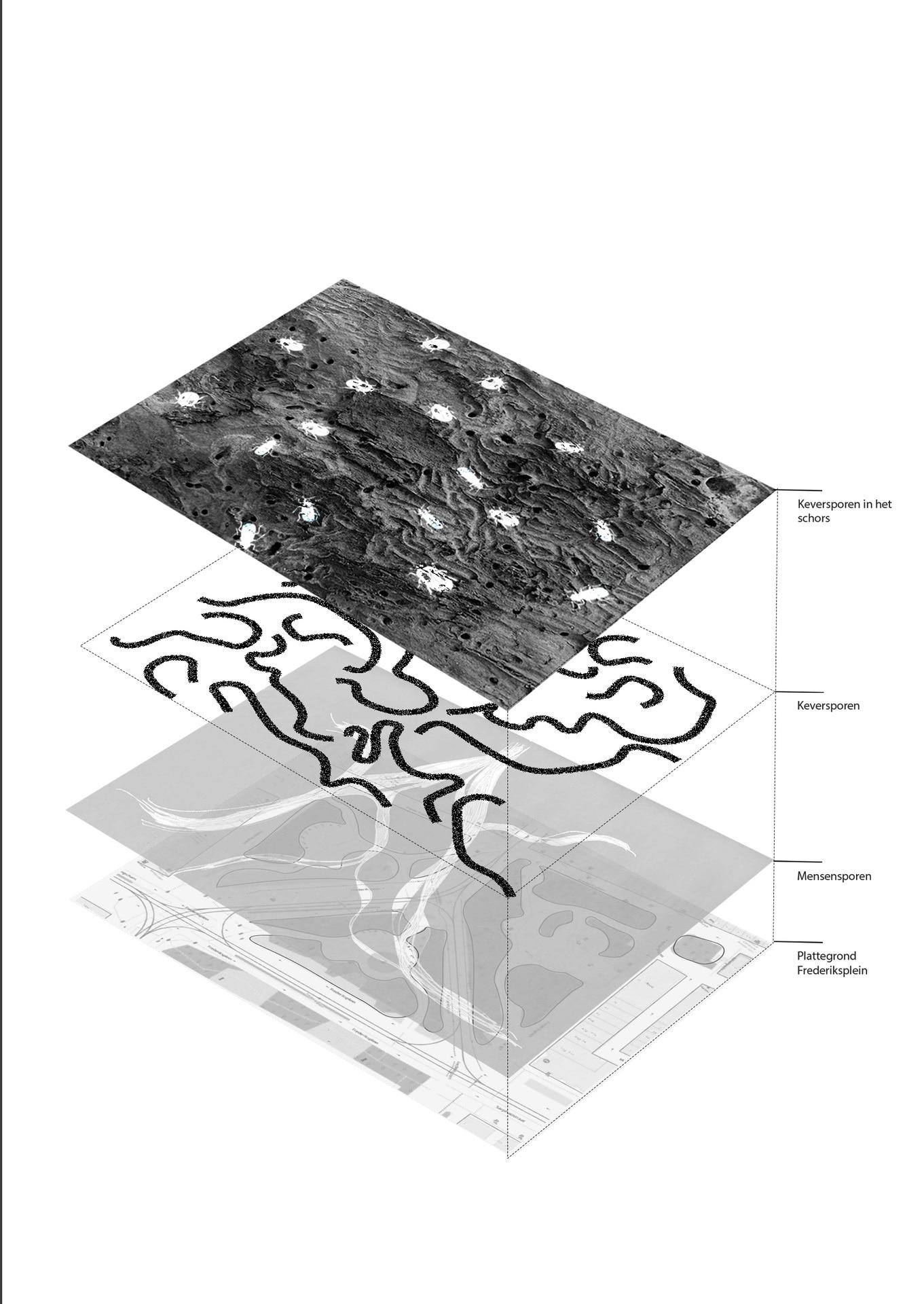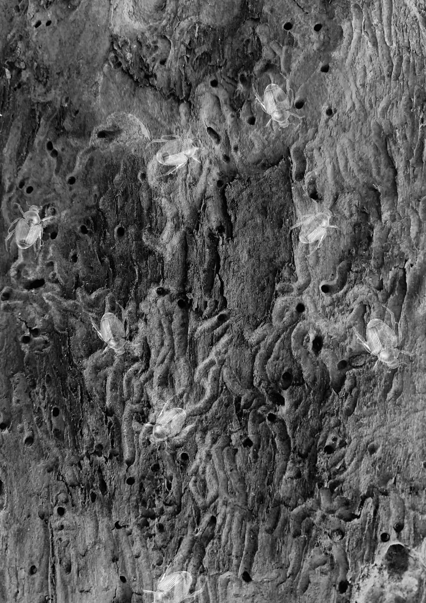 Tijdens het verkennen van de bomen begon ik met het identificeren van hun schors en wat voor leven zich daarin bevindt. “Wat leeft er in een boom die zich bevindt in de stad?" "Wat gebeurt er onder de grond, in de toppen en in het schors van de boom?” Met dit onderzoek ben ik gaan spelen met het verschalen van micro- naar macroniveau. De wereld van insecten en de verschillende levensvormen die in harmonie samenleven, is een inspiratie geweest voor dit ontwerp.
