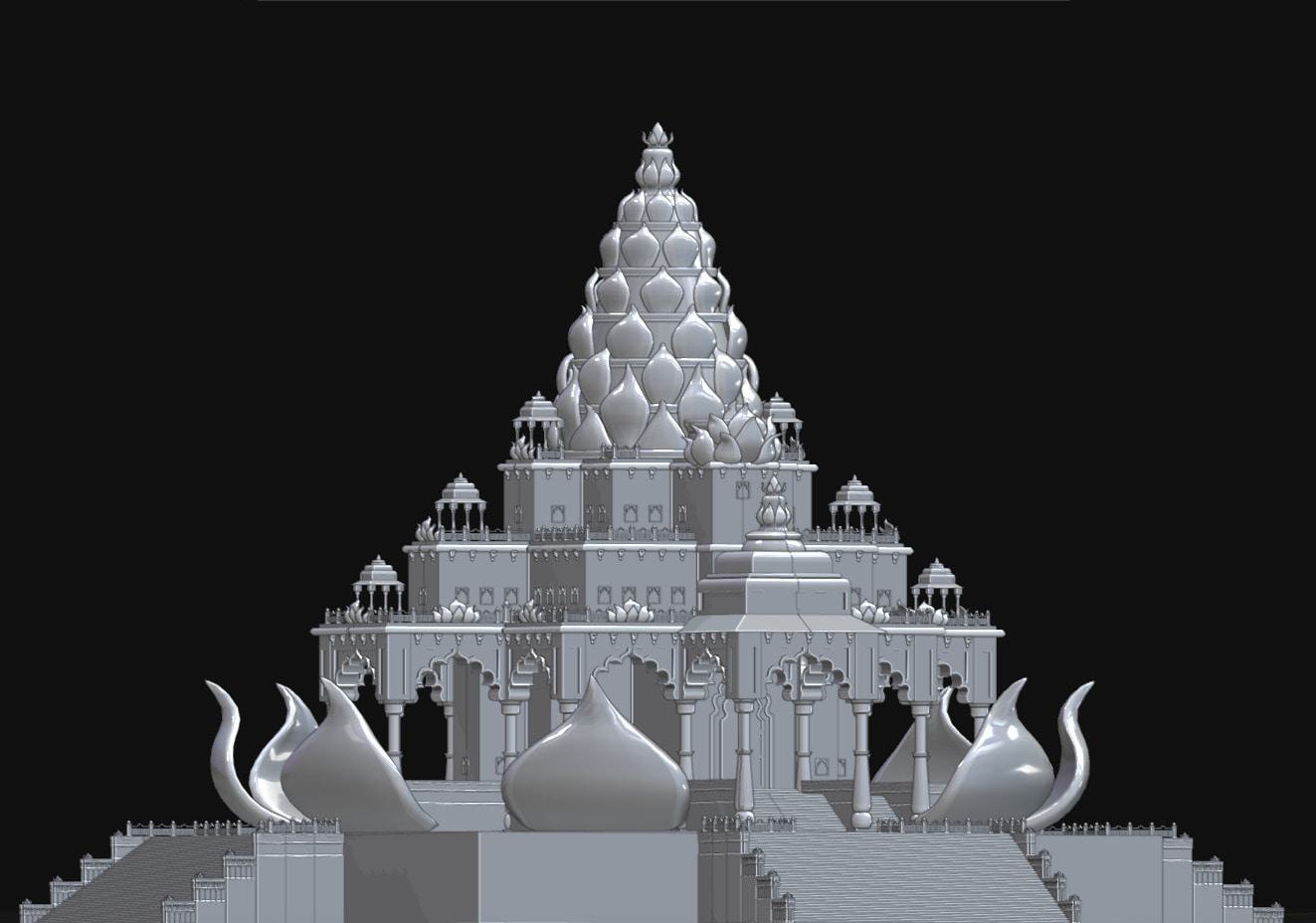 Een render uit de 3D software van het lotus paleis. Het model is symmetrisch en modulair opgebouwd.