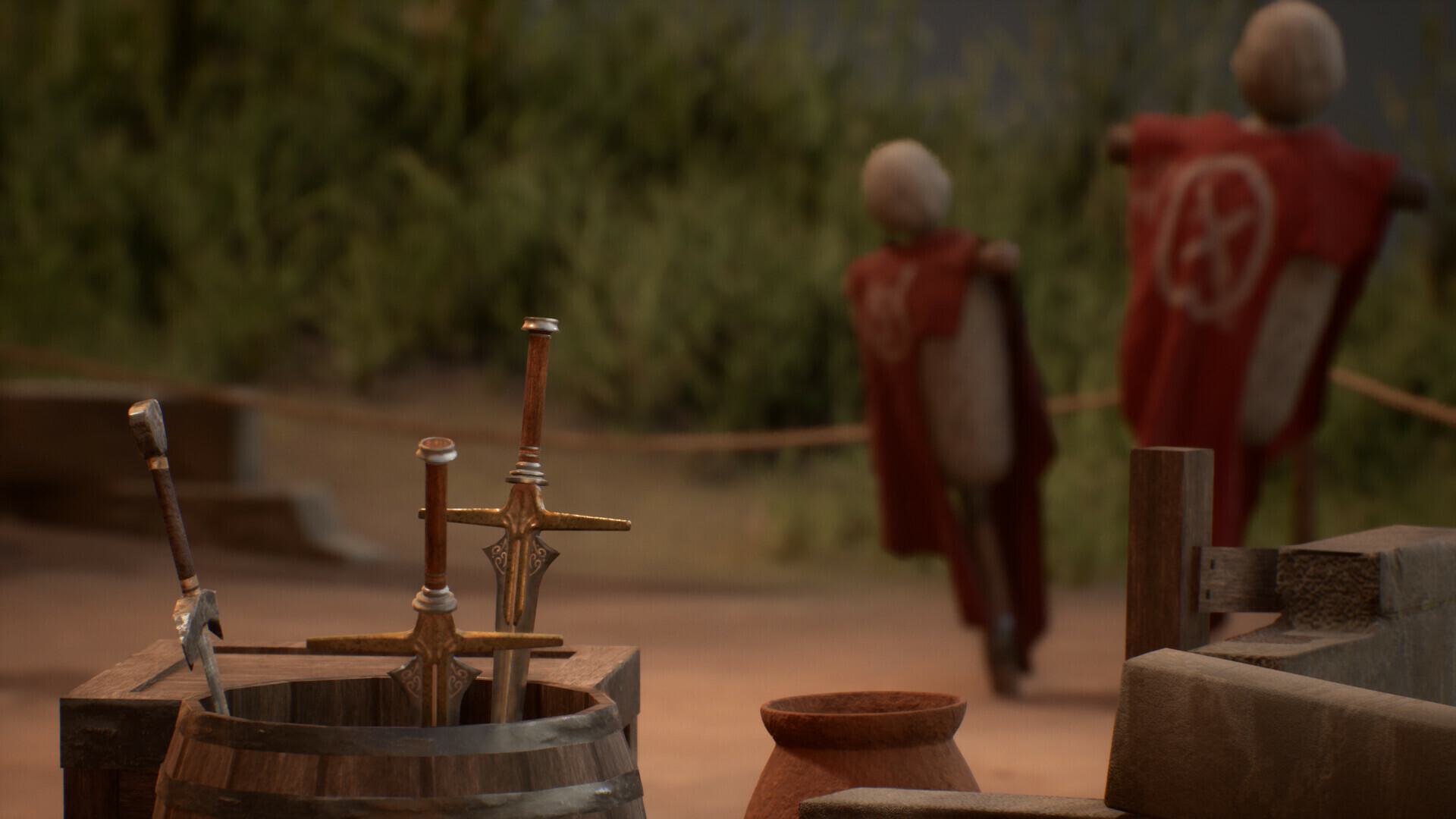 A game-ready interactive weaponshop, where testing weapons is the main objective, so I can motivate Action-RPG players to test a weapon and support them in choosing one. This all without the use of a GUI menu (Graphical User Interface).
