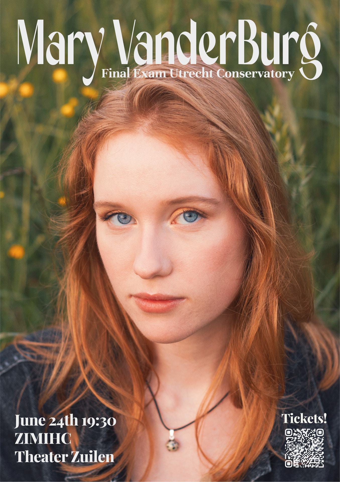Na vier jaar aan het conservatorium in Utrecht Vocals Jazz/Pop gestudeerd te hebben, zal Mary VanderBurg op 24 juni haar afstudeerconcert spelen in het Zimihc theater Zuilen.