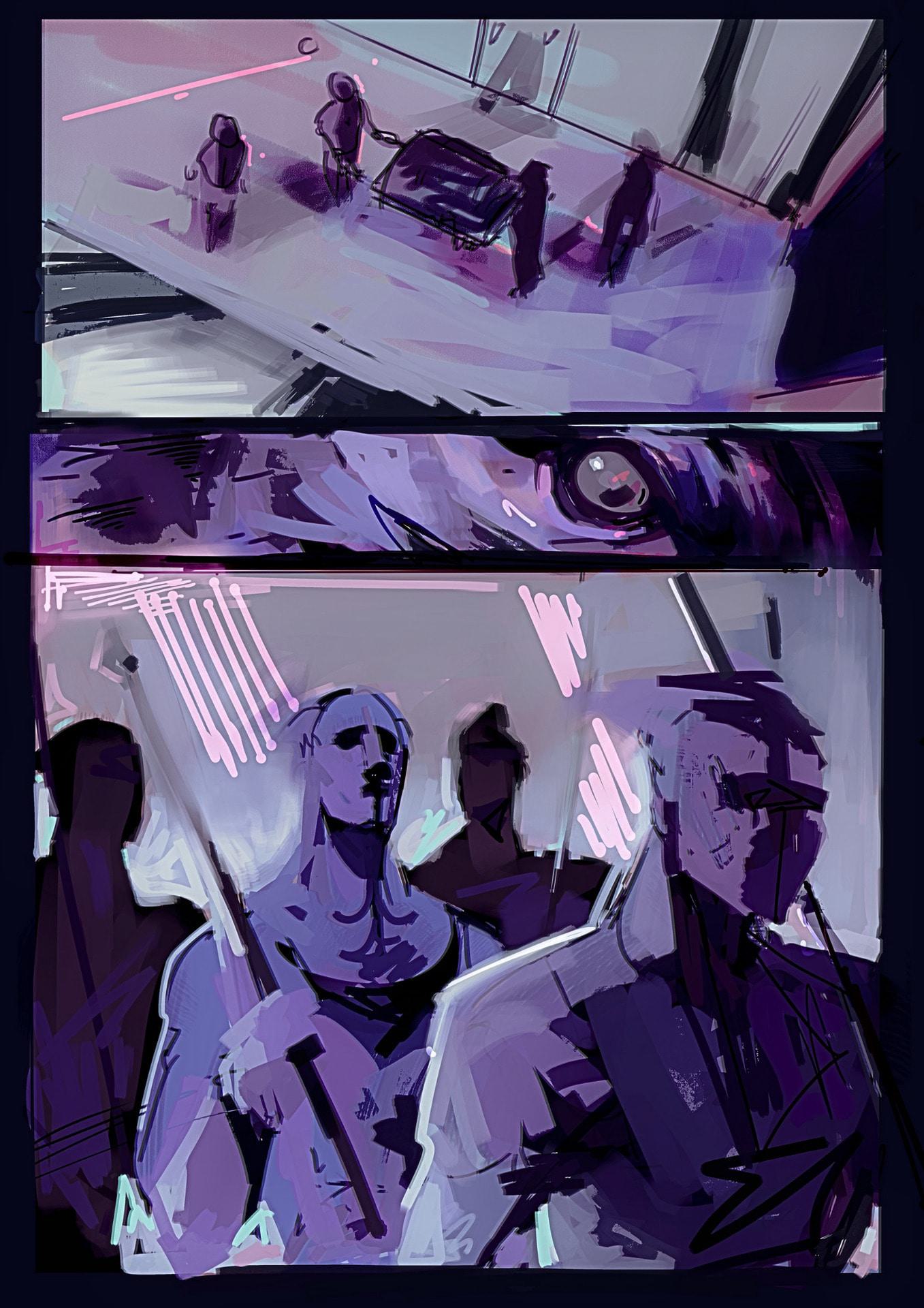 Based on my research of Expressionism within sequential art, I carried this interest into the project as a focal point. This endeavour was exciting, as it allowed me to experiment with various techniques and styles in the visualization of comic pages.