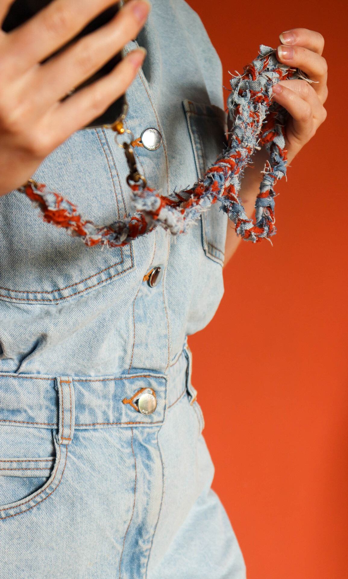 Voor mij is werken met restmateriaal, werken vanuit een herinnering. Nu kan ik de lievelingsbroek die kapot is, nog steeds dragen, maar dan als tas of accessoire. Daarnaast is een reststof voor mij de herinnering aan het project dat ik eerder met die stof heb gemaakt. De herinnering geeft een extra lading aan de al unieke items.