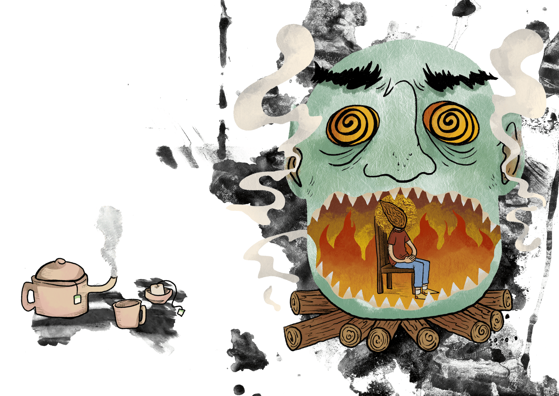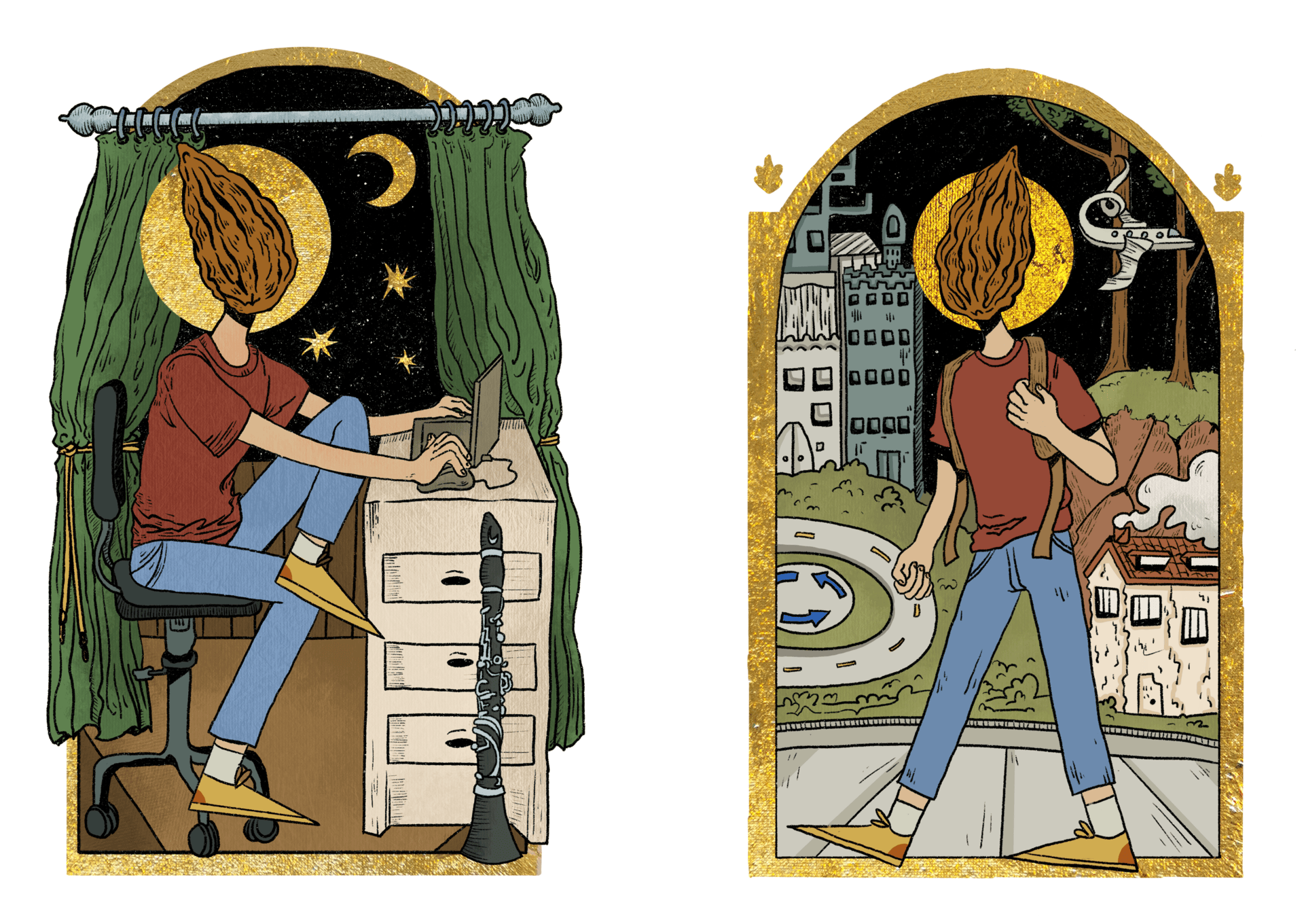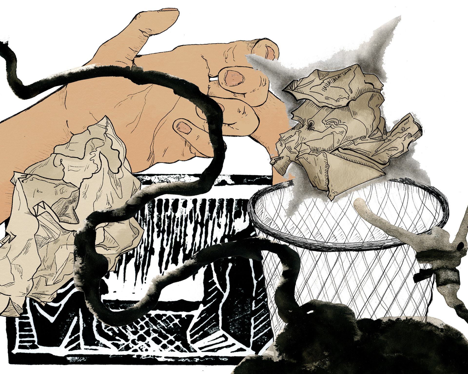 In mijn werk gebruik ik graag inkt, houtskool en fineliners. Hoewel ik voornamelijk in zwart-wit werk, houd ik ook erg van risoprinten, wat mijn illustraties naar een heel nieuw niveau tilt door de levendige kleuren. Het verschil tussen piepkleine details en ruige, vlotte lijnen is iets wat ik waardeer in mijn eigen werk. Mijn werk eindigt vaak een beetje grof, terwijl het tegelijkertijd gedetailleerde elementen bevat.