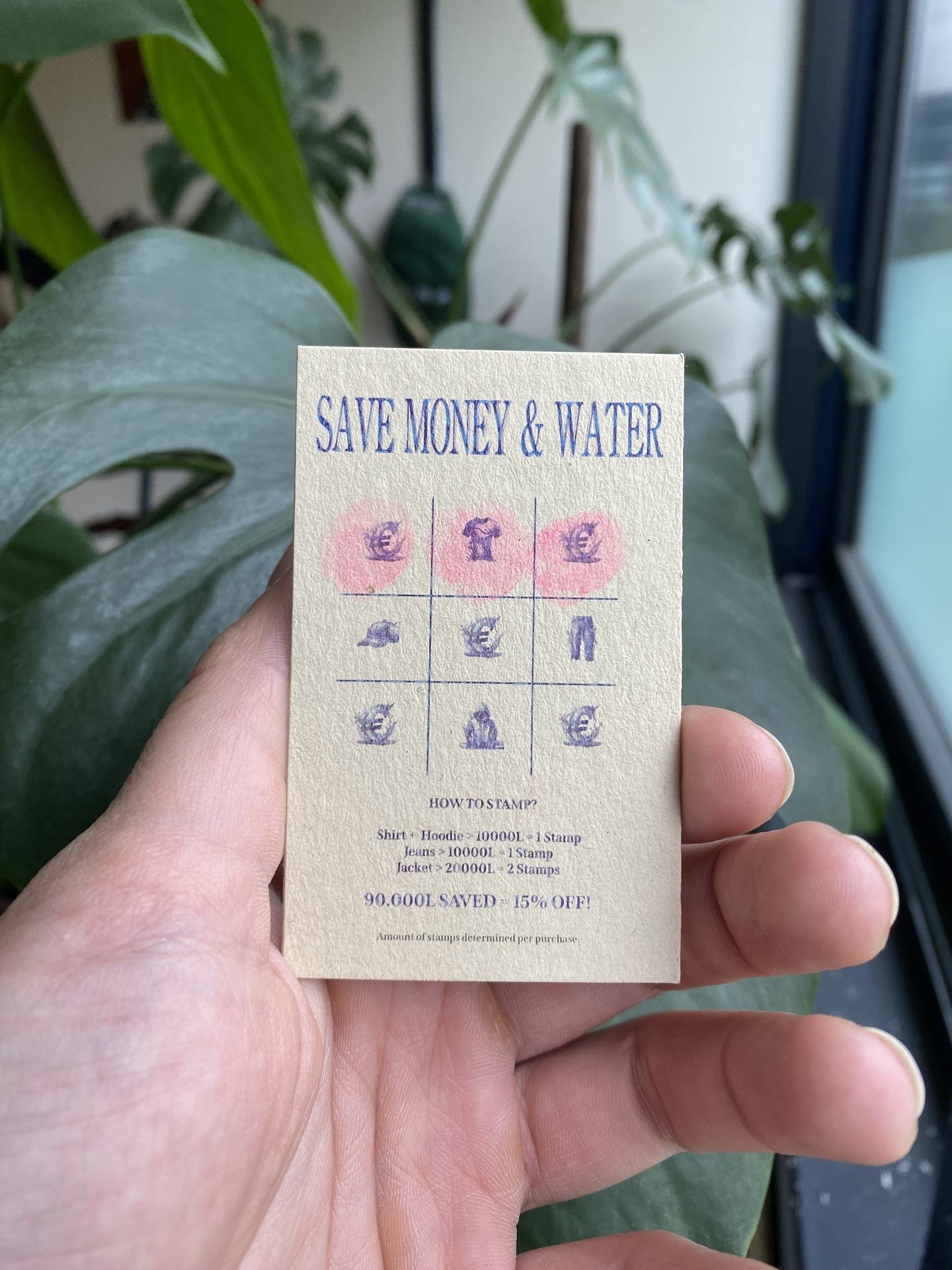 Het eindwerk is een stempelkaartconcept voor vintagewinkels. Door tweedehands kleding te consumeren, in plaats van nieuw geproduceerde kleding, ben je op meerdere vlakken een sociale en milieuvriendelijke consument. Je bespaart water, vermindert uitstoot, draagt niet bij aan oneerlijke arbeidsomstandigheden en de enorme afvalproductie die leidt tot onleefbare gebieden en erbarmelijke omstandigheden voor de bevolking rondom productiefabrieken en textielstortplaatsen.