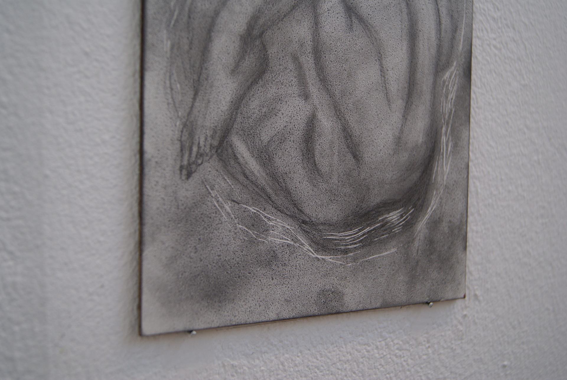 In my recent drawings, I have been exploring the technique of smudging to enhance the narrative within my works. This method adds an element of mystery, implying a sense of movement or a hidden history within the depicted body. Within my works, certain themes embody a duality of wanting to hide and longing to be seen. I leave traces that resist completely being erased or intentionally covering specific areas in my drawings and collages. This act of concealing, like overlaying a landscape with a torn photograph of a body or skin, carries a symbolic significance. Even in my collages, I strive to establish a connection between the image and the body or skin part I glue onto the background, as if it still yearns to camouflage itself. This interplay between the desire to hide and the desire to be seen is a recurring motif in all the images I create.