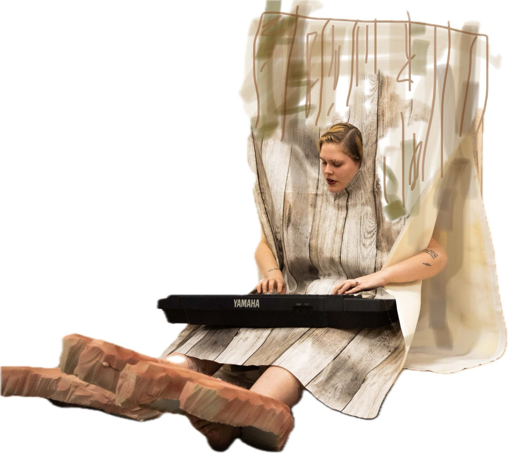 Deze installatie gaat over eenzaamheid, kwetsbaarheid, bezieling geven aan het zielloze. Het gaat over comfort vinden in alles wat op hout lijkt en dat niet is. Een theatrale installatie met een performance.